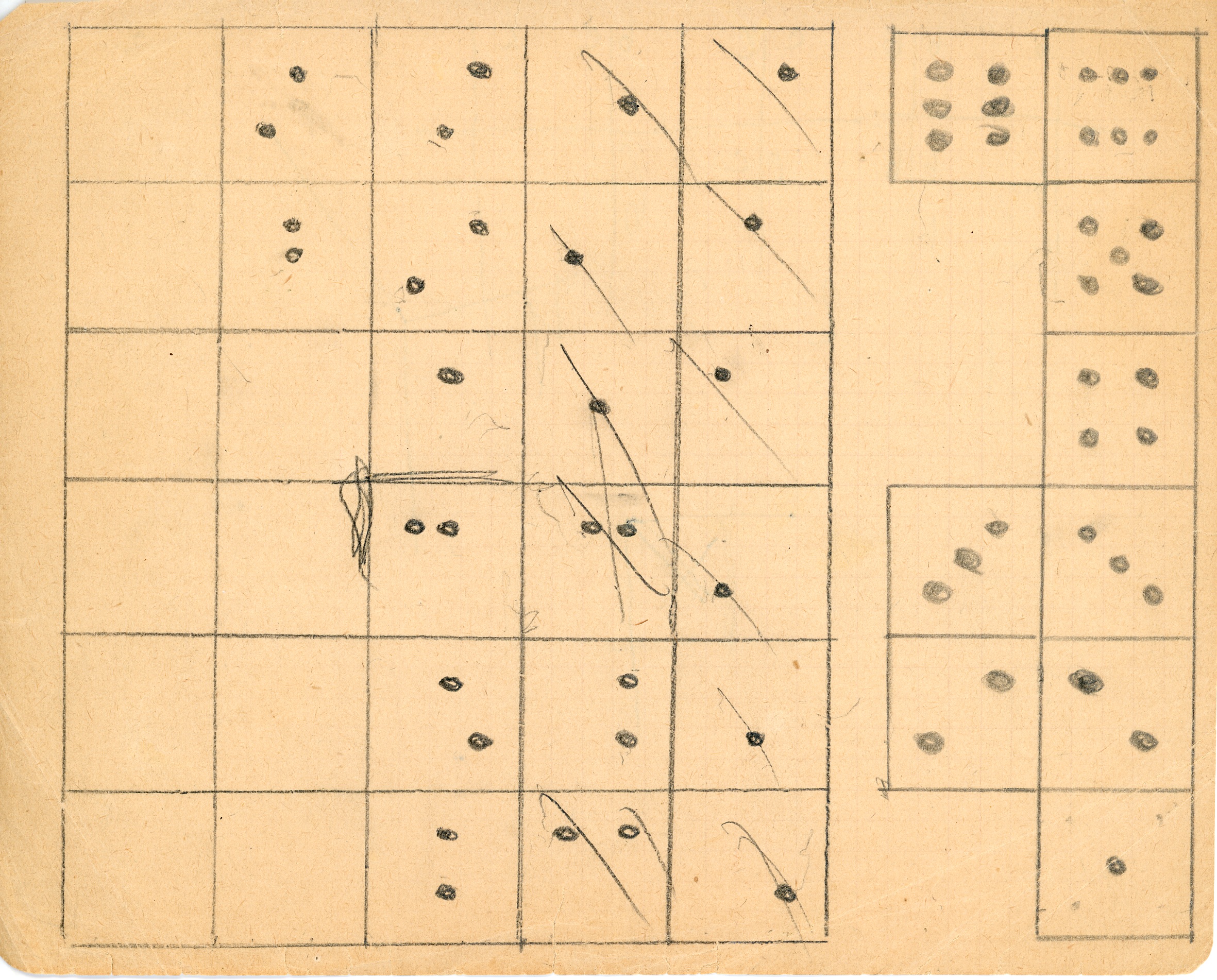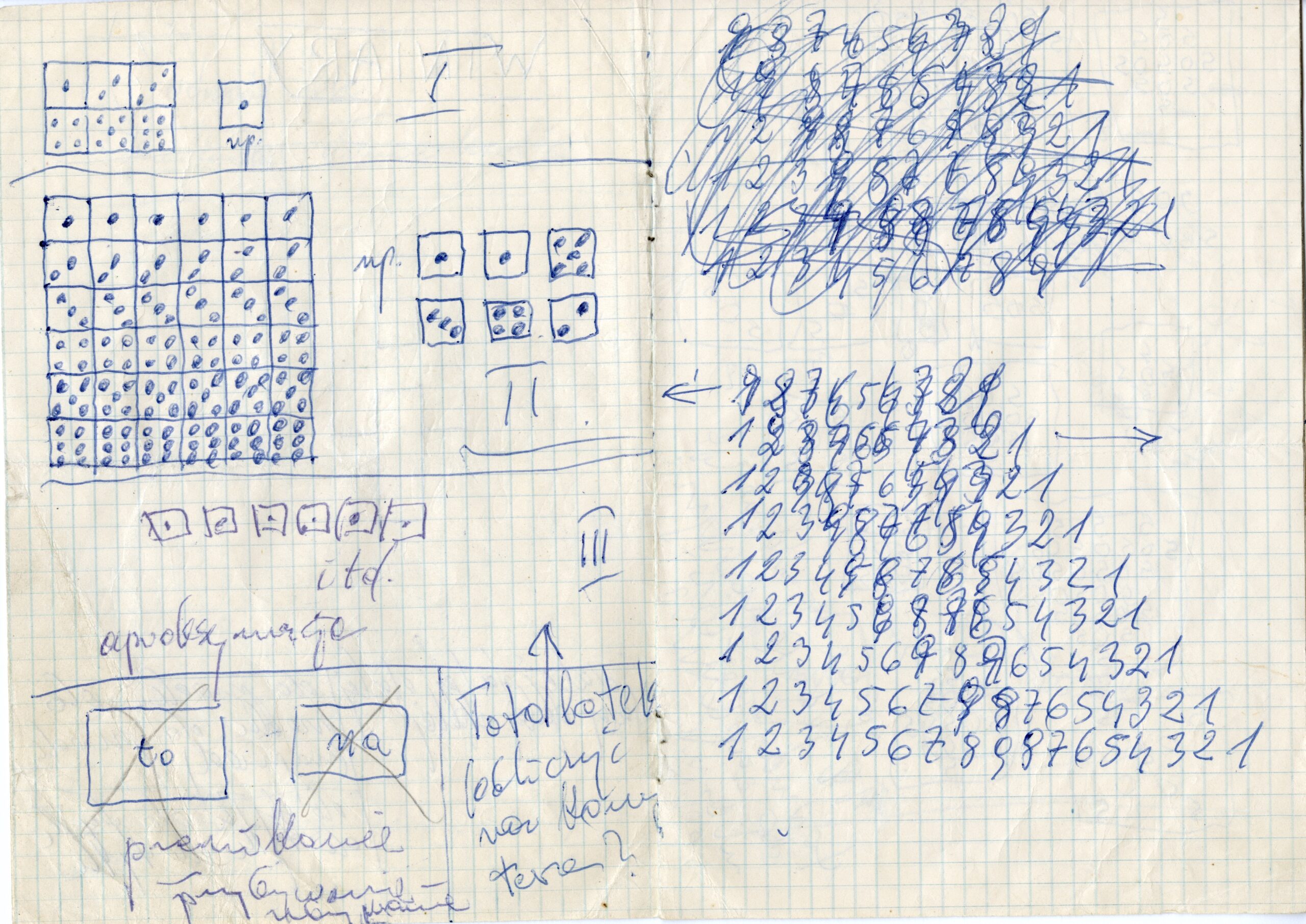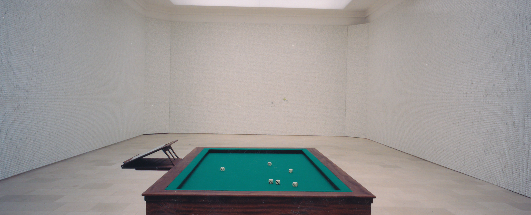 Praca zrealizowana na 50. Biennale w Wenecji w Pawilonie Polskim (2003). Kolejne dzieło systemowe, odwołujące się do języka matematyki – użyte w niej kostki do gry zawierają liczby oznaczone kropkami. Oparte jest na permutacji wyczerpującej wszystkie możliwości wyników przy sześciu rzutach kostką. Komputerowo wyliczonych możliwych sekwencji liczb było ponad 46 tysięcy, a do ich zobrazowania użytych zostało niemal 300 tysięcy kostek do gry, wypełniających wszystkie ściany ogromnego pawilonu. Dopełnienie pracy stanowił stół bilardowy oraz kubek i kostki do wykonywania rzutów – mógł skorzystać z nich widz, poszukując następnie swojej sekwencji punktów na ścianach. Praca ta ma sens egzystencjalny: rzucający kostką jest wobec ogromnej ich liczby w podobnej sytuacji, jak człowiek wobec swojego losu, wobec Boga. Istotny jest tu przypadek sprawiający, że uda się – lub nie – odnaleźć swój układ na ścianie. Mocno koresponduje z tą pracą zdanie Einsteina „Bóg nie gra w kości”, wypowiedziane w sprzeciwie wobec kwantowej teorii budowy Wszechświata, czyli przypadku jako zasady jego istnienia. Stanisław Dróżdż w autokomentarzu do tej pracy stwierdził, że jest to „gra z samym sobą o nic” – w przeciwieństwie do przywołanej przez niego jako jej inspiracja gry o życie Rycerza ze Śmiercią w Siódmej pieczęci Ingmara Bergmana. Sfotografowane kolejno fragmenty ścian z kostkami w Pawilonie Polskim zostały dodatkowo ujęte w sześciu tomach ksiąg.
