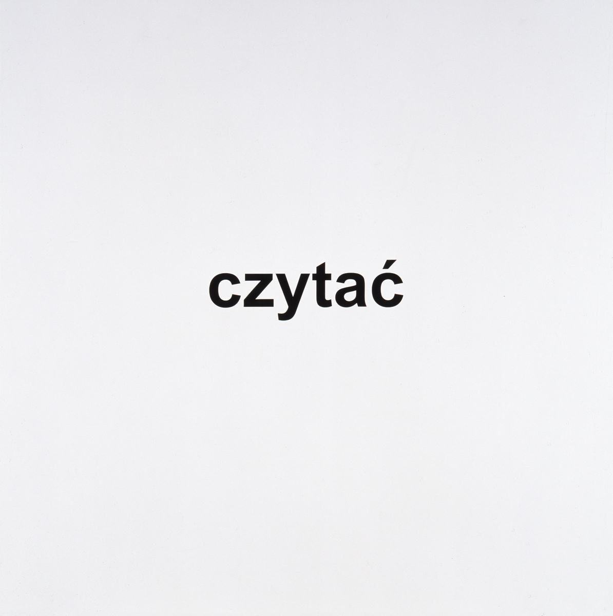 Tautologiczna praca korespondująca z pracą nie czytać z 1971 roku. Stanisław Drożdż często wracał do swoich dawnych koncepcji, rozbudowując pojedyncze prace w serie albo tworząc ich nowe warianty. W tym przypadku obie prace prowadzą ze sobą dialog w umyśle widza, tym wyraźniej wskazując na paradoksalną anty-tautologię pracy wcześniejszej. Praca realizowana była w postaci liter wyciętych z czarnej folii naklejonych na sztywne podłoże.