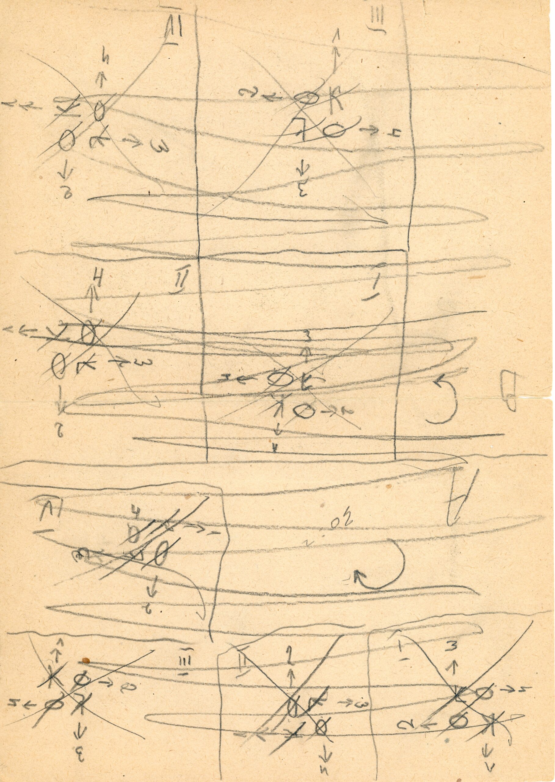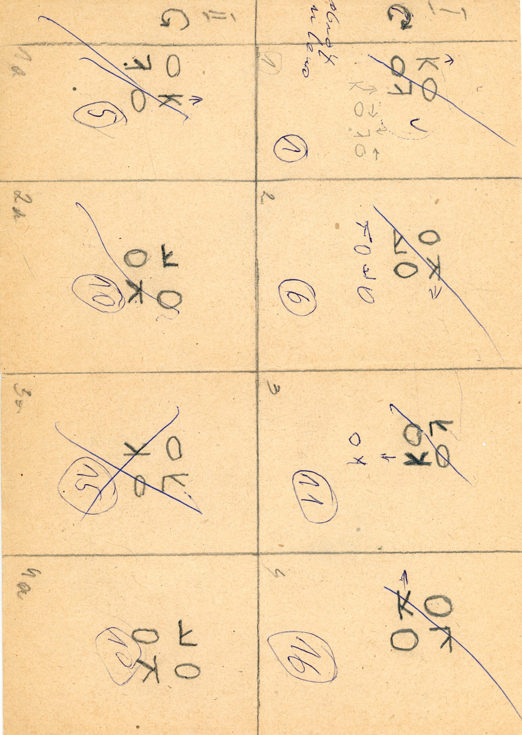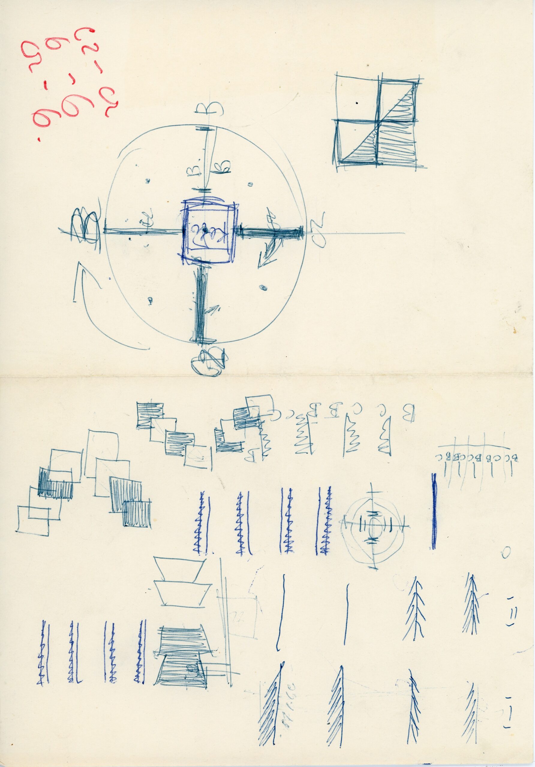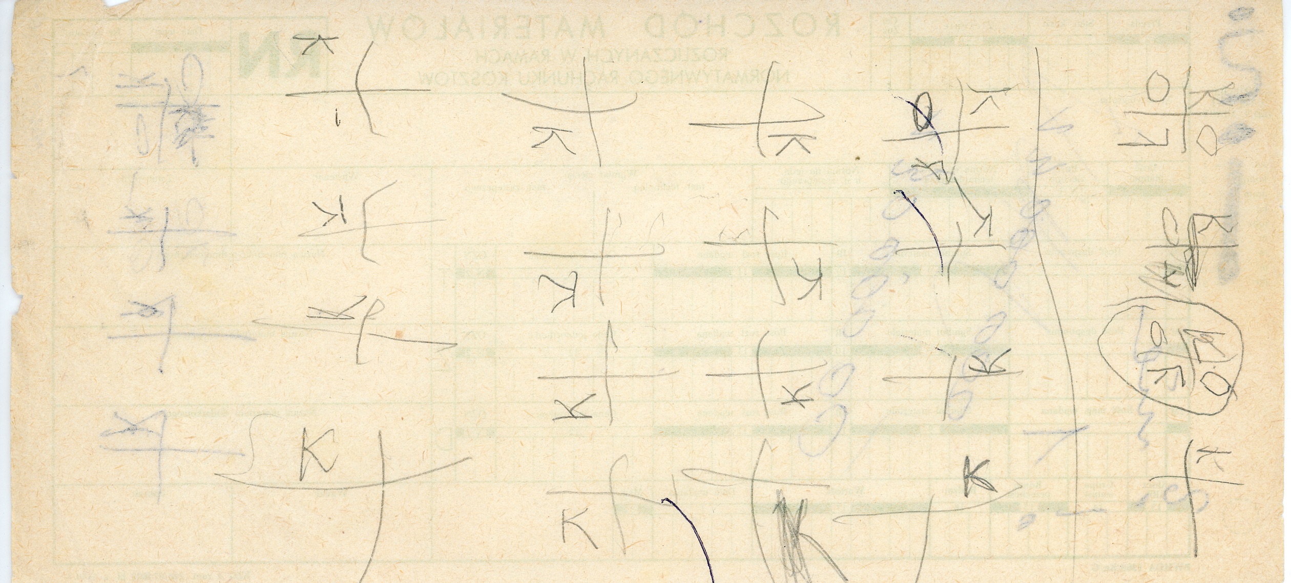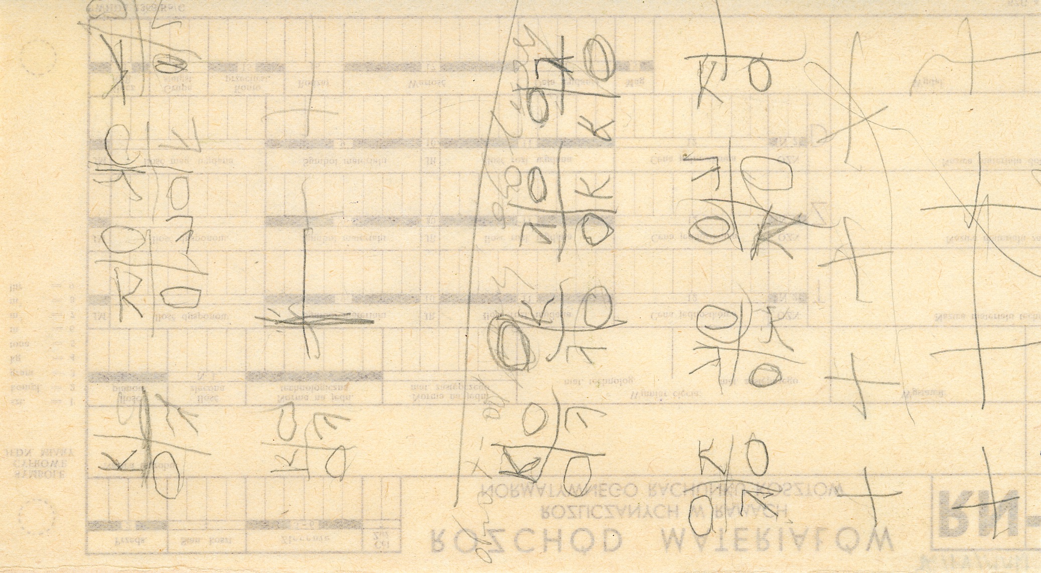 Praca składa się z szesnastu kwadratów; w każdym z nich wpisane jest słowo „koło”, którego litery obracają się wokół własnej osi zgodnie z kierunkiem wskazówek zegara oraz w przeciwnym kierunku. Koncepcja oparta jest na tautologii. Pierwotna wersja pracy to litery umieszczone na planszy w układzie pionowym, w którym kolejna litera umieszczona jest w pozycji zgodnej z ruchem przeciwnym do ruchu wskazówek zegara. Koło prezentowane było w postaci osobnych plansz umieszczonych na podłodze w układzie 4 x 4, w takich odstępach, by możliwe było poruszanie się wokół każdego kwadratu zgodnie z obrotem liter w nim zawartych. Realizowana była także jako prezentacja koncepcji – w postaci kwadratów wyciętych i naklejonych na kwadratowe podłoże, odbitki fotograficznej oraz druku cyfrowego na folii. W przestrzeni publicznej Wrocławia zrealizowana została w kamieniu stała wersja koła (pl. Nowy Targ, 2016).