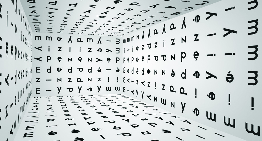 Pierwsza praca przestrzenna Stanisława Drożdża, zrealizowana w Galerii Foksal w Warszawie. Temat tego pojęcia podejmowany był kilkakrotnie w jego twórczości, począwszy od tradycyjnych wierszy lingwistycznych po między w formie obiektu ze szkła. Prezentacja z 1977 roku wychodziła w swojej koncepcji od kartki/planszy, przenosząc tekst na wszystkie ściany, podłogę i sufit galeryjnej sali wystawowej. Słowo „między” rozbite jest tu na osobne litery rozmieszczone według autorskiego systemu na wszystkich tych płaszczyznach, tak aby zwielokrotniona liczba słów pokryła je bez reszty. Idea między nawiązuje do pomysłu z pracy litery – zwizualizowana jest tu właściwość umysłu, który bez trudu jest w stanie odczytać tekst rozproszony w przestrzeni. Zasada konstrukcji pracy tej została założona według wymiarów Galerii Foksal i wszystkie kolejne realizacje tej pracy w innych galeriach musiały tę zasadę respektować – co powodowało konieczność budowy wewnątrz galerii specjalnego boksu (nie można tej pracy po prostu skalować – wielkość liter musi pozostać stała). Dzieło między jest najbardziej znaną pracą Stanisława Dróżdża, jego kolejne wersje realizacyjne znajdują się w stałych zbiorach kilku muzeów i galerii w Polsce, a także poza Polską (Berlin, Rzym). Materiał realizacyjny to płyty kartonowo-gipsowe oraz płyty MDF.