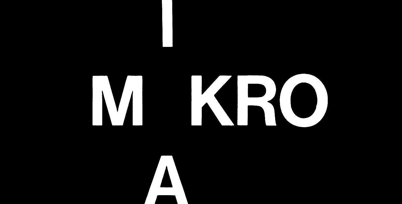 Praca oparta jest na spostrzeżeniu, że przeciwstawne pojęcia „mikro” i „makro” wyrażone są słowami, które różni tylko jedna litera. To kolejna praca zwracająca uwagę na zadziwiające właściwości języka werbalnego, w którym wystarczy minimalna różnica w brzmieniu i literowym zapisie słowa, by wyrazić ogromną różnicę znaczeń. Praca realizowana była w formie prostokątnej planszy z białymi literami (wersalikami) na czarnym tle. W przerwie po pierwszej literze „M” znajdowały się fragmenty liter „I” oraz „A”; prezentowane były dwie wersje: z literą „A” u góry oraz „I” u dołu i wersja odwrotna. Praca realizowana była w postaci ręcznie malowanej tuszem na brystolu oraz druku cyfrowego na papierze naklejonym na sztywne podłoże. W 1999 roku zrealizowana została jako mural na fasadzie prywatnego domu w miejscowości Hünfeld w Niemczech, w ramach projektu „Das offene Buch” (Otwarta książka) Gerarda Jürgena Bluma-Kwiatkowskiego.