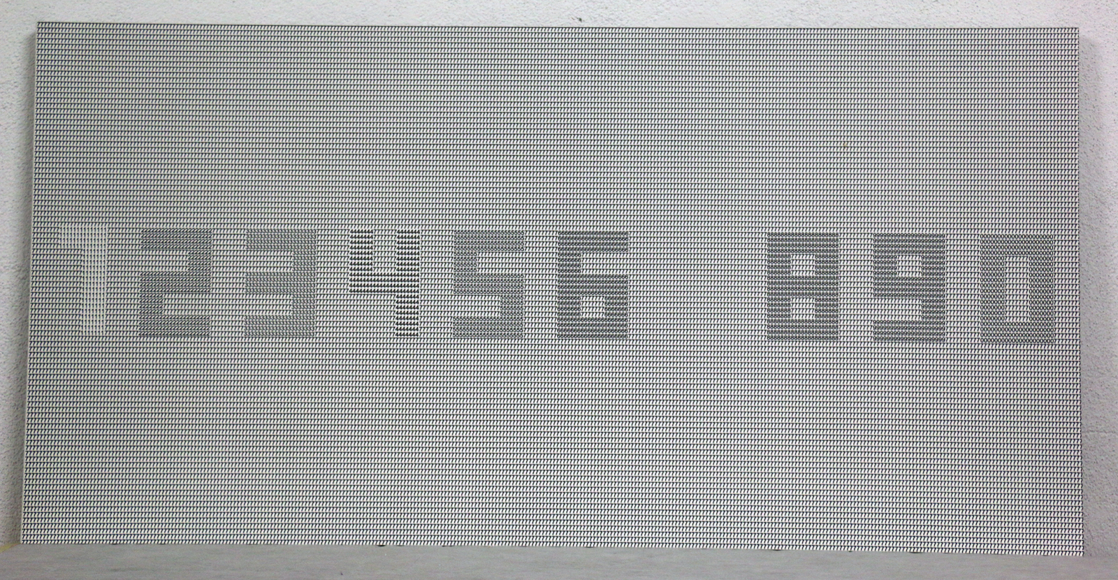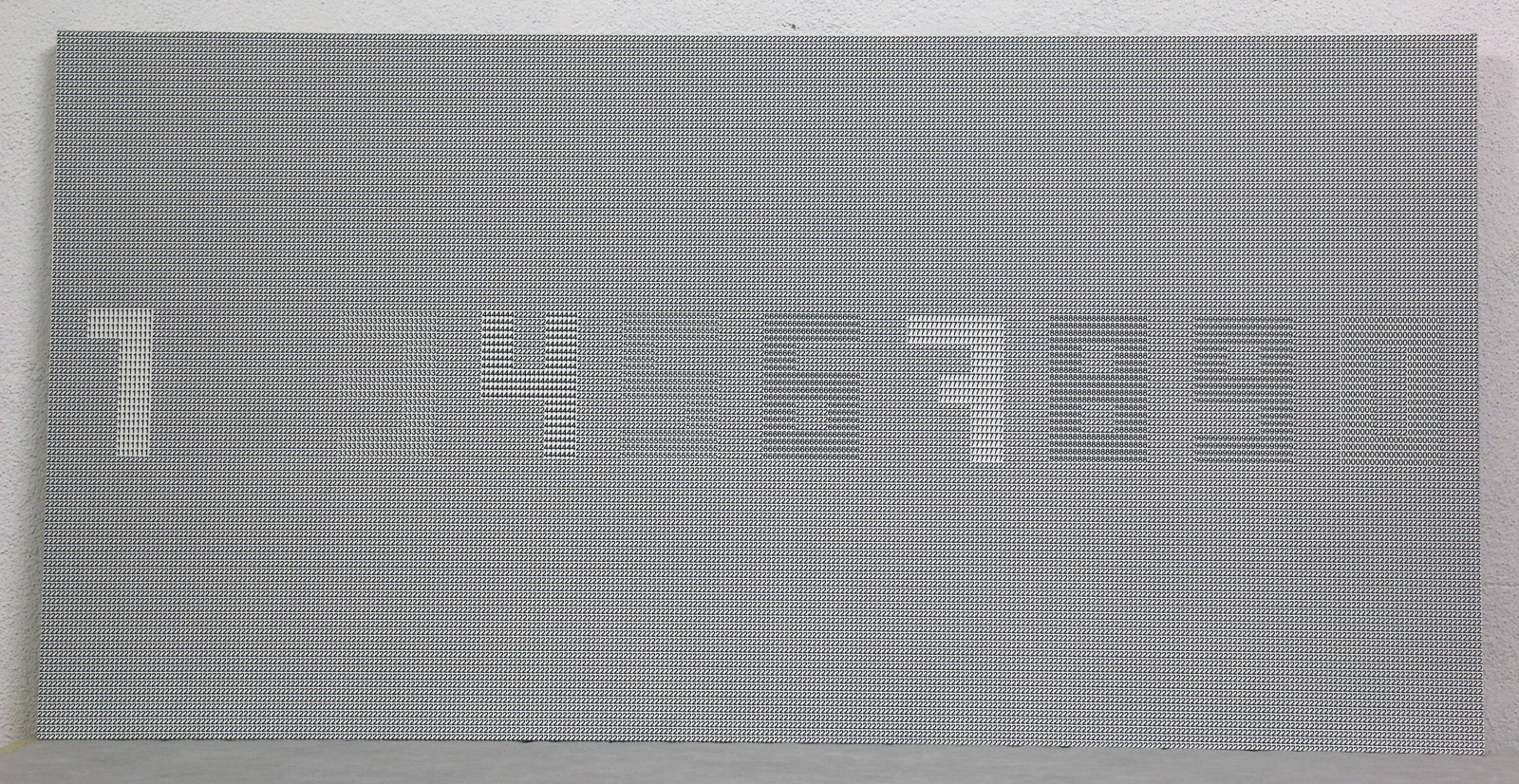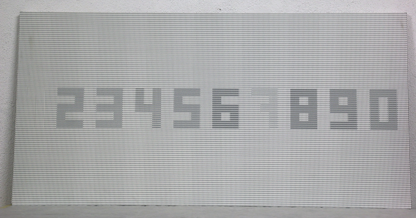 Praca składa się z 12 plansz wypełnionych cyframi od 1 do 9 i 0 według założonego systemu kombinacji. Na pierwszej planszy znajduje się w jej centrum ciąg tych właśnie cyfr, z których każda złożona jest z tych samych drobnych cyfr („1” – z jedynek, „2” – z dwójek, „3” – z trójek itd.). Druga plansza składa się z wąskich szpalt, z których każda złożona jest z kolejnych drobnych cyfr (pierwsza szpalta – z jedynek, druga – z dwójek itd.). Na pozostałych dziesięciu planszach w centrum nadal obecny jest ciąg cyfr (jak na pierwszej planszy), ale tło wypełniają drobne cyfry według stałej zasady: najpierw jedynki (co sprawia, że w tło wtapia się cyfra „1”); potem dwójki itd. Wykorzystująca matematyczne znaki praca odnosi się do zagadnienia epistemologicznego: to, co oczywiste (jak np. powietrze), najtrudniej jest nam spostrzec. Realizowana była jako wydruk komputerowy na papierze oraz druk cyfrowy na papierze naklejonym na sztywne podłoże.