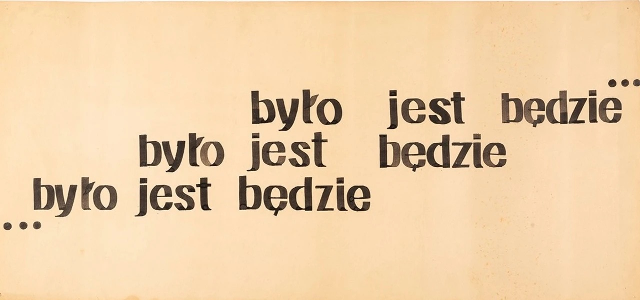 Dzieło tworzą słowa „było jest będzie” powtórzone trzykrotnie w trzech wersach ułożonych schodkowo. W wersie poprzedzającym oraz końcowym znajdują się trzy kropki sugerujące kontynuację tych trzech słów wcześniej i później. Jest to pierwszy pomysł tematu, który zrealizowany został następnie jako Klepsydra, gdzie powielone słowa ułożone są w kształt klepsydry (zegara piaskowego lub wodnego). Praca prezentowana była w wersji maszynopisu na papierze oraz planszy wystawowej – ręcznie pisana tuszem na brystolu.