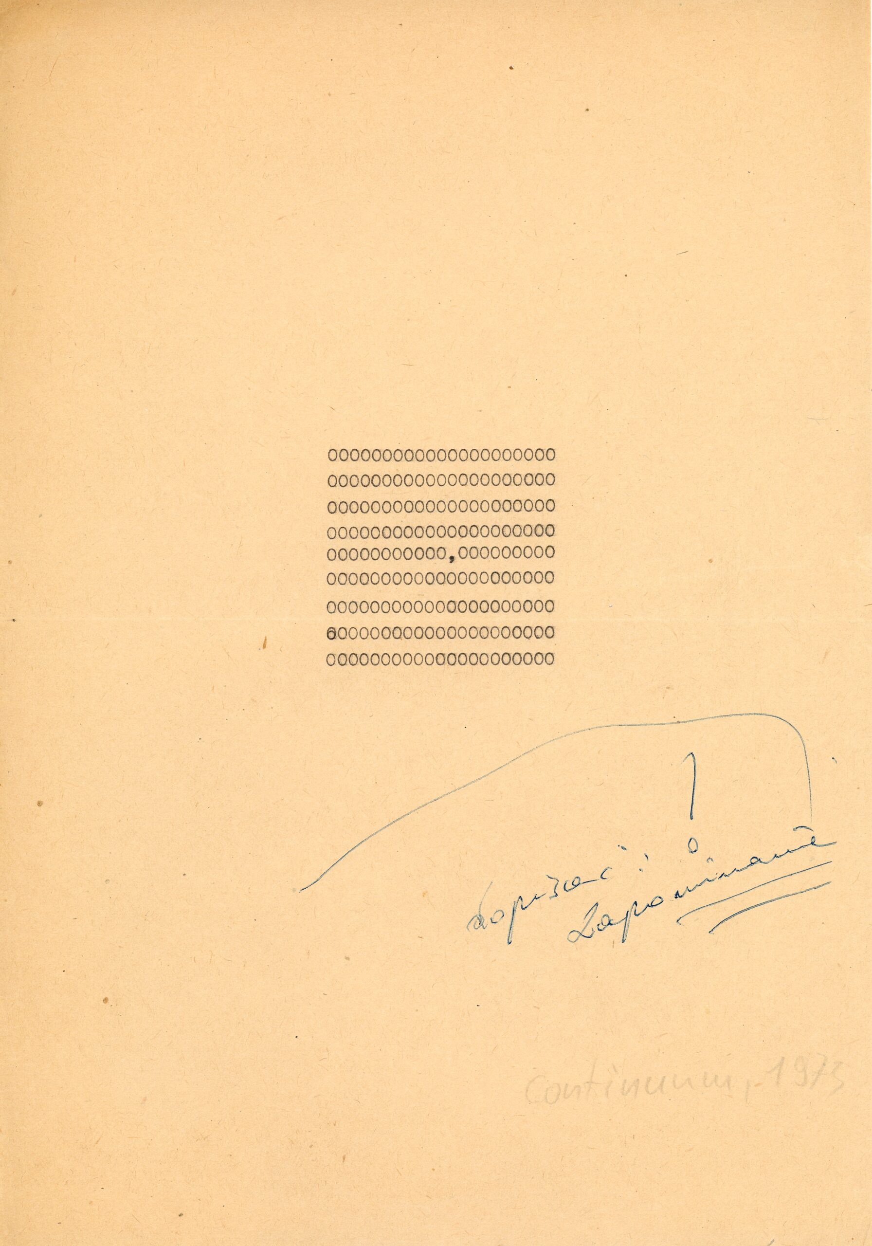 Pracę tworzą gęste wersy składające się z zer i wypełniające całą płaszczyznę aż do jej krawędzi, którymi skrajne wersy zer zostają przecięte. W centrum pracy wstawiony jest przecinek rozdzielający środkowy wers na dwie części. Jest to kolejny utwór oparty na symbolach matematycznych. Jego zasadą jest wskazanie na znaczenie drobnego elementu w systemie językowym, którego obecność lub nieobecność radykalnie zmienia sens dzieła – podobnie jak w przypadku Optimum, mikro – makro czy przy/e/szłość. W Continuum ten jeden przecinek decyduje o tym, że w miejsce dekoracyjnego wzoru utworzonego przez zera mamy do czynienia z ogromnym ułamkiem dziesiętnym, w którym nieznane są zarówno początkowe jego cyfry znajdujące się przed przecinkiem, jak i końcowe po przecinku. Fascynacja wielkimi liczbami niemożliwymi do ogarnięcia ludzką wyobraźnią, ale możliwymi do prostego zapisania w języku matematyki, to temat powracający w twórczości Drożdża, związany z pojęciami przestrzeni i czasu w relacji do ludzkiego życia. Praca realizowana była w postaci maszynopisu, planszy pisanej ręcznie emulsją na brystolu oraz na zagruntowanej płycie pilśniowej, a także jako wydruk cyfrowy na papierze naklejonym na sztywne podłoże.