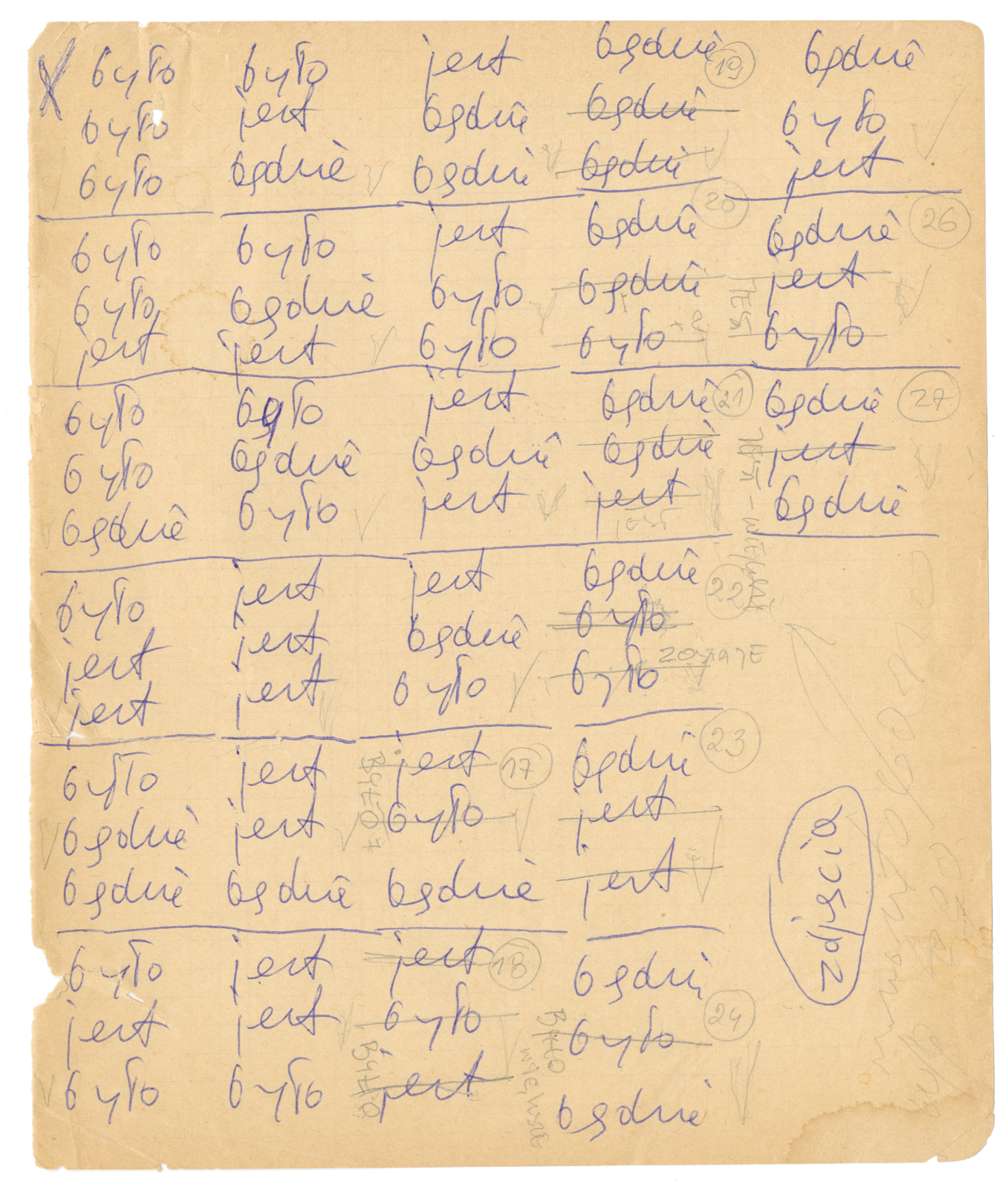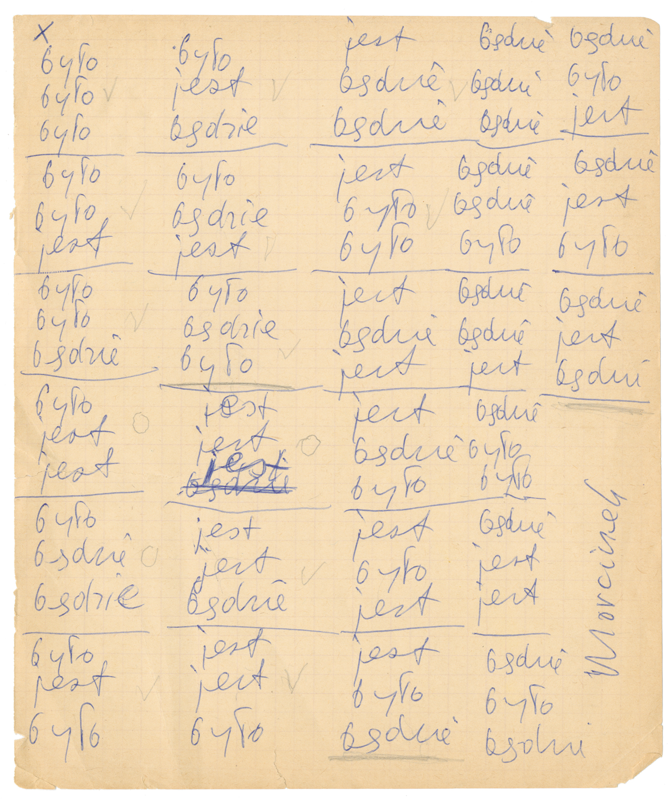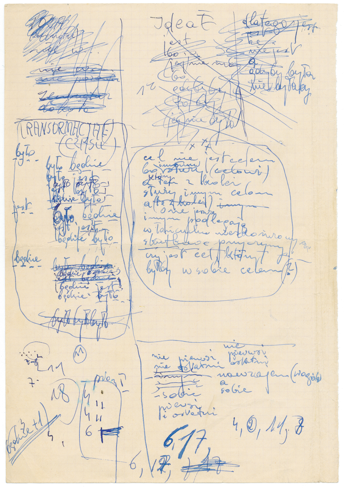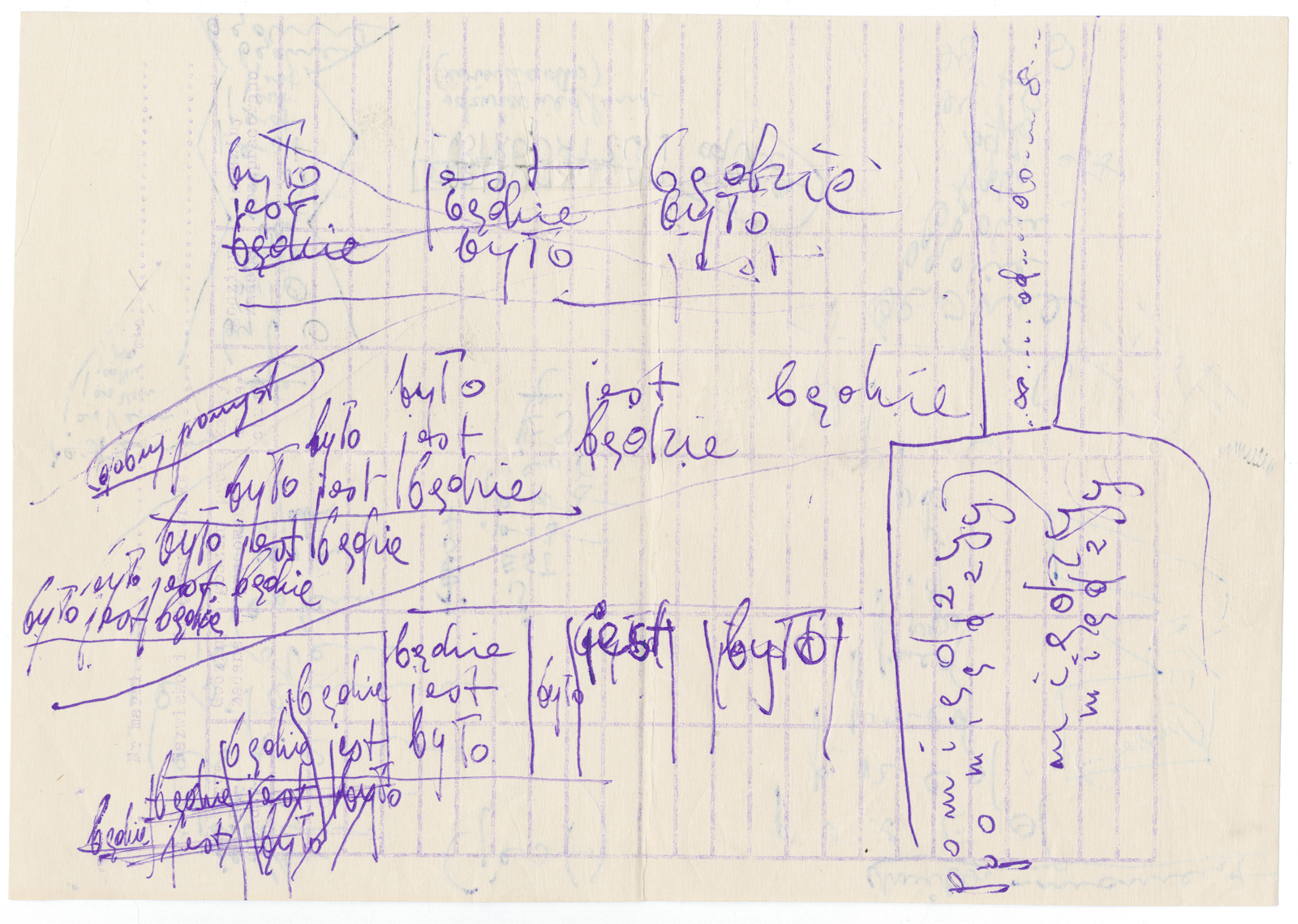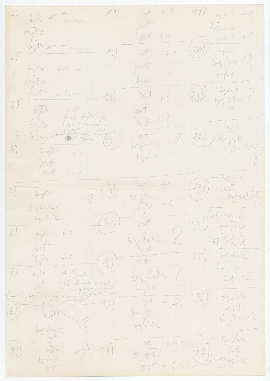Praca w ostatecznej wersji składa się z 54 plansz (1990); w pierwszej wersji była to jedna plansza. Zwielokrotnione słowa „było” „jest” „będzie” ułożone są w kształt klepsydry (zegara piaskowego lub wodnego), zamieniając się miejscami według założonego przez autora systemu, opartego na zasadzie matematycznej permutacji. Słowa rozmieszczone są pionowo, ze wzrastającą lub malejącą wielkością liter. Klepsydra jest refleksją nad istotą strumienia płynącego czasu oraz jego percepcją przez człowieka. Prezentowana była jako zapisana czarnymi literami na białym tle, w wielu wersjach: maszynopis na kartce papieru, odbitka fotograficzna, plansza wystawowa – ręcznie pisana tuszem na brystolu i emulsją na sklejce, druk na papierze i folii naklejony na sztywne podłoże (PCV, pleksiglas i aluminium – dibond) oraz jako mural na zewnętrznej ścianie budynku (Muzeum Współczesne Wrocław). W 1990 roku opublikowana została broszurka z wszystkimi planszami pełnej wersji Klepsydry (CSW Zamek Ujazdowski, Warszawa), a w 2007 – książeczka w twardej oprawie, również zawierająca całość pracy (Galeria 86, Łódź).