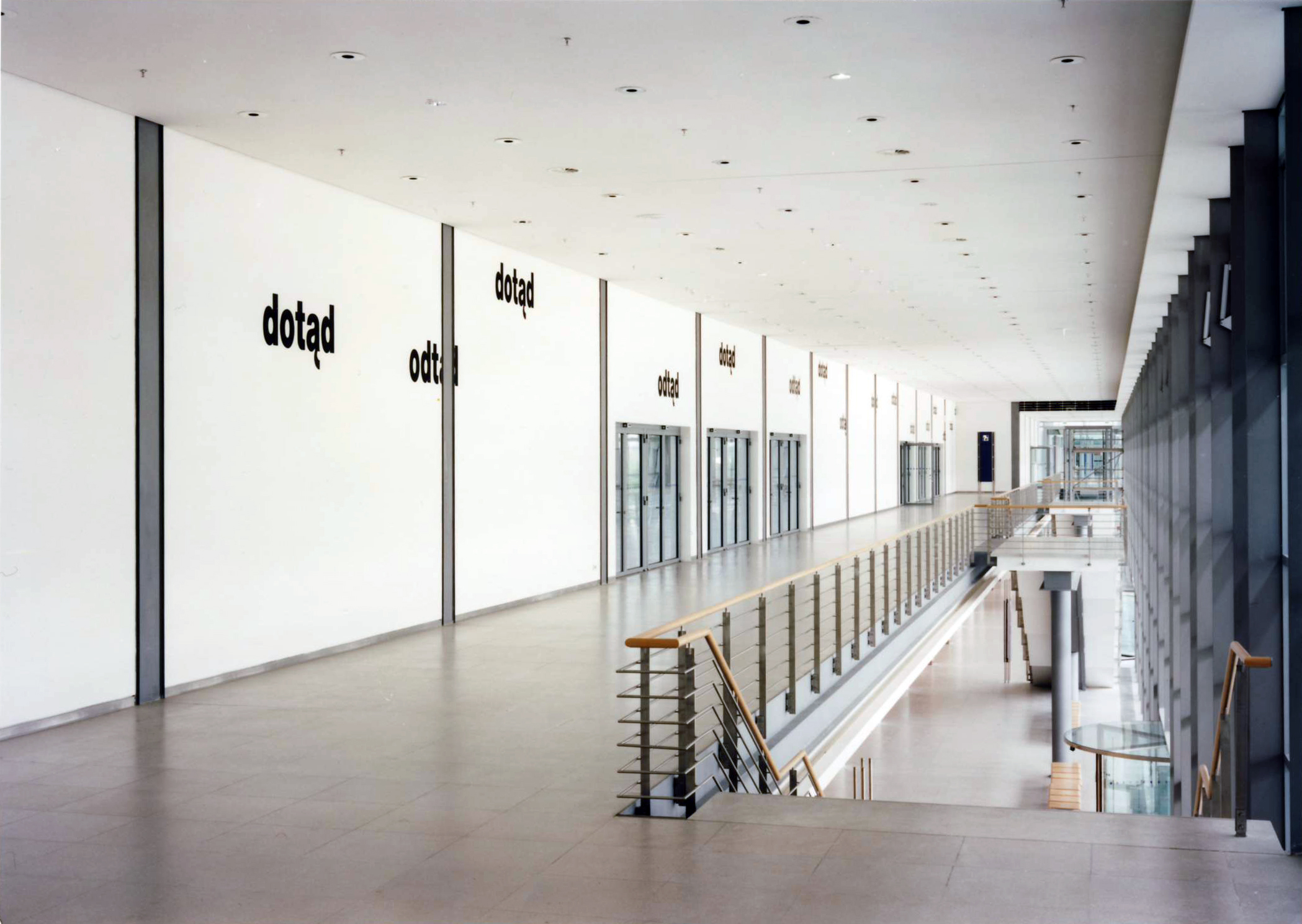 Praca zrealizowana została jako stały element przestrzeni budynku Międzynarodowych Targów w Lipsku. Tytułowe słowa zapisane czarnymi literami ciągną się w wielokrotnej repetycji przez całą długość (ok. 80 m) białych ścian wewnątrz budynku, umieszczane na różnych wysokościach. Ściana podzielona jest w równych odstępach pionowymi szarymi pasami, na krawędzi których niknie fragment słowa, a jego zakończenie pojawia się po drugiej stronie pasa. Ta pozornie wymierzająca odległości praca jest refleksją nad możliwością istnienia przestrzeni wielowymiarowej, której nie potrafi zrozumieć nasz umysł, ani tym bardziej objąć wyobraźnia.