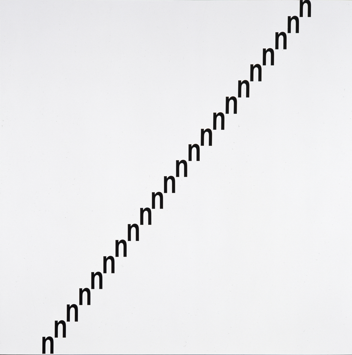Praca sugerująca nieskończone potęgowanie potęg (początek i koniec przecięte są krawędzią kartki/planszy. Refleksja nad właściwością języka matematyki, w którym w prosty sposób można zapisać operacje niewyobrażalne dla ludzkiego umysłu. Praca była realizowana w formie maszynopisu, wydruku komputerowego oraz liter wyciętych z folii na sztywnym podłożu.