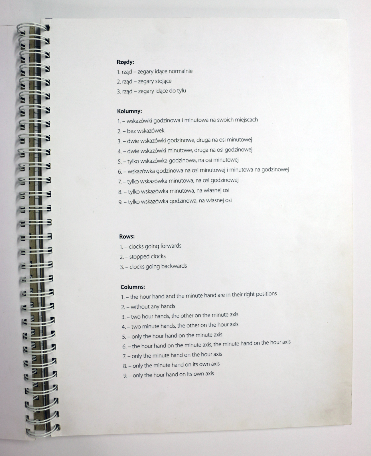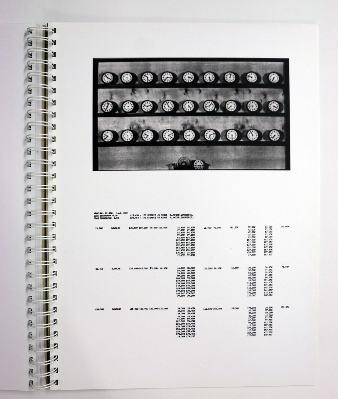 Autor Stanisław Dróżdż Nazwa, tytuł Tablice czasowe do pracy, Bez tytułu (zegary) CZas powstania 1978 Technika / Materiał druk cyfrowy/papier, karton Wymiary brak danych Lokalizacja Muzeum Współczesne Wrocław (depozyt)